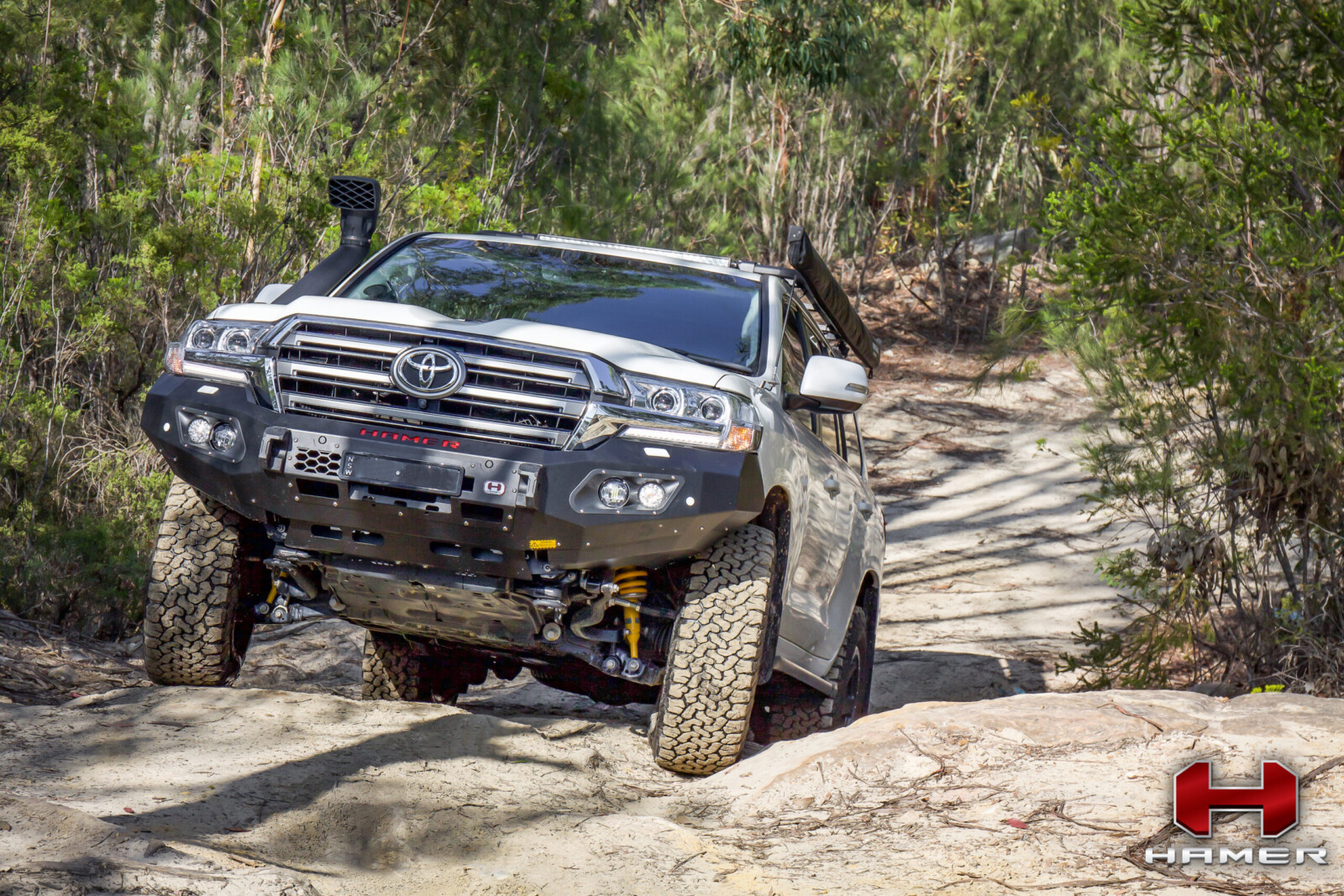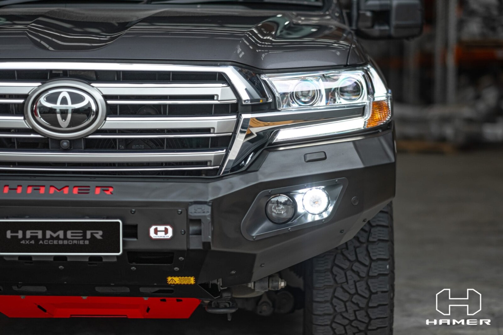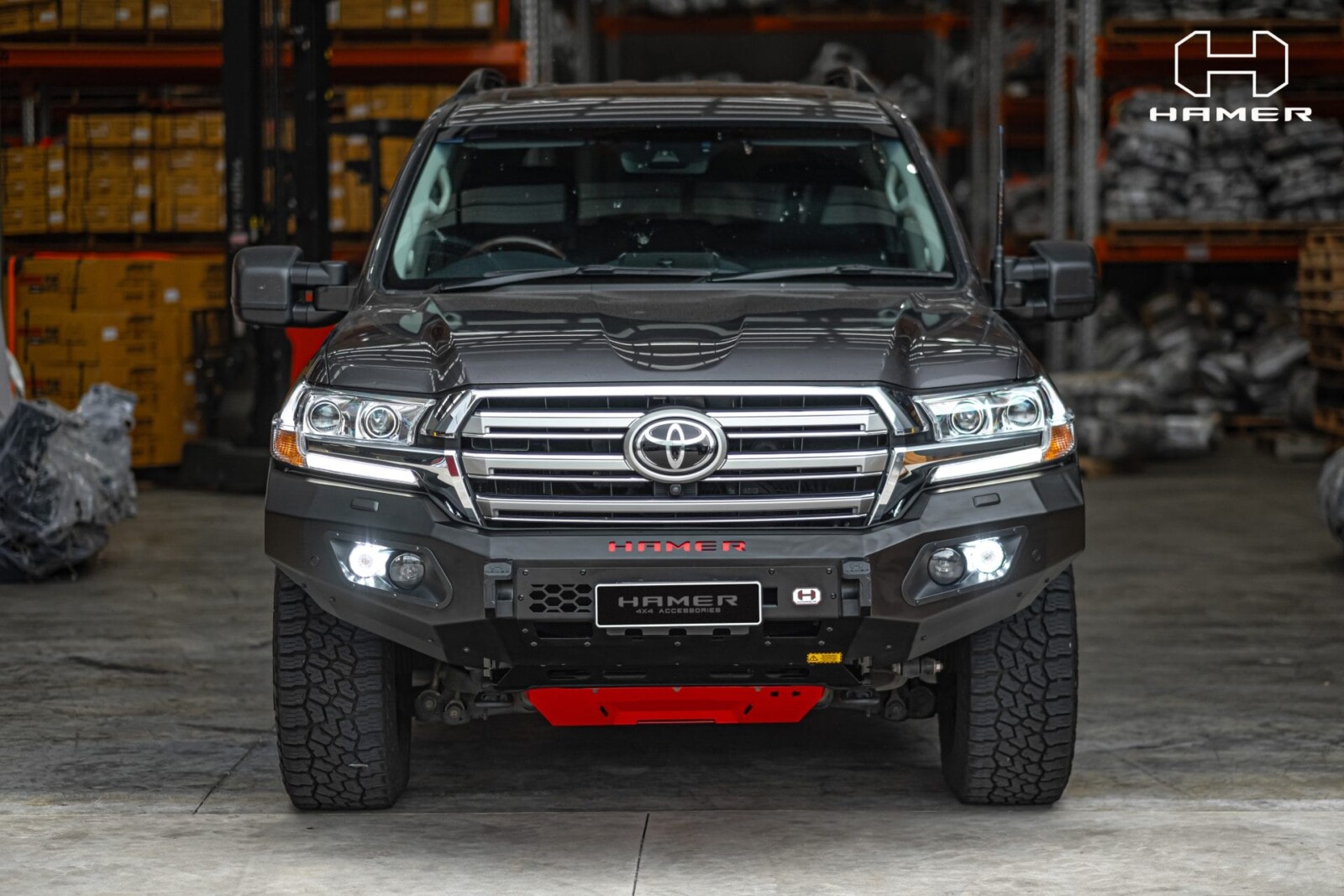 Hamer King-Series front bar is specifically designed to match each vehicle perfectly. Not only adding the tough look to your vehicle, Hamer front bar protects the front part of your vehicle during an unexpected event. Stay confident in every journey you make.Hamer front bar is built from 3 mm. Thickness steel. The front bar comes with 4 LED (Fog lights, Daytime Running Lights, Position lights and Indicator lights). It is winch compatible (12000 lbs and below) and adopts all original sensors from the vehicle. Ensuring your safety, All Hamer front bars are ADR Certified and Air Bag Compliant