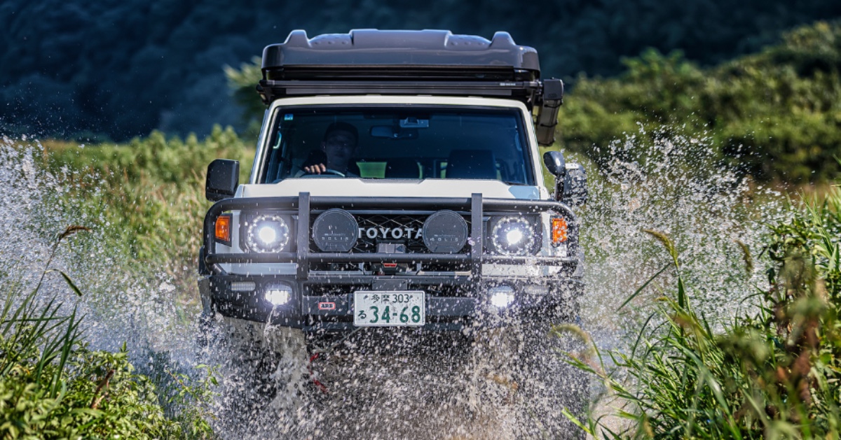 Upgrade your 2024 Land Cruiser Pickup with the ARB Adventure Bull Bar – rugged, stylish, airbag-compatible, and built for tough terrains. Fog light kit not included.