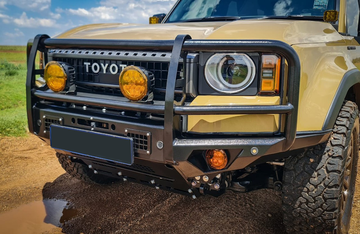 - Prado bull bar makes provision for Rigid 360 series 3″ round lights or flush mount D2 Dually LED Lights – please specify configuration on order