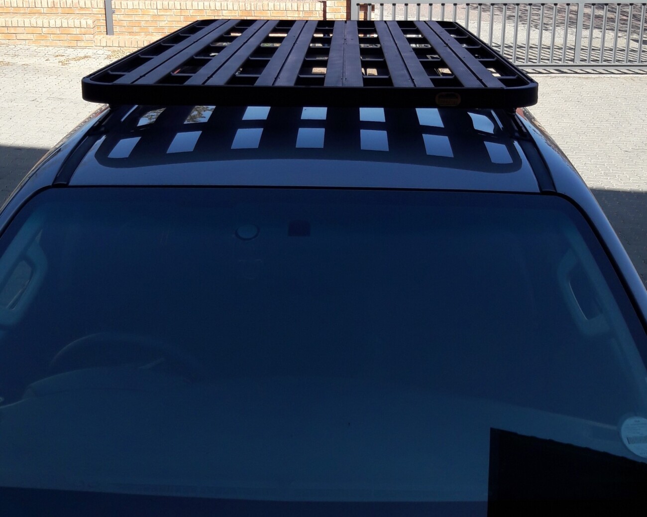 Welded together for added strength, the roof rack features vertically aligned slats to reduce wind noise and is designed with space underneath for easy accessory mounting.