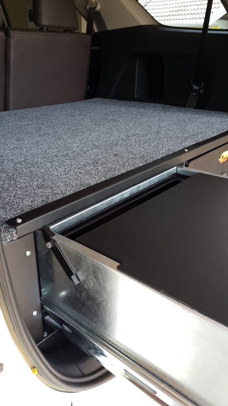 A very simple product from Big Country to install. This drawer is designed to fit the loadbay floor using a specially made aluminium frame which bolts down onto the existing bolt holes as used for the jump seats – no drilling!