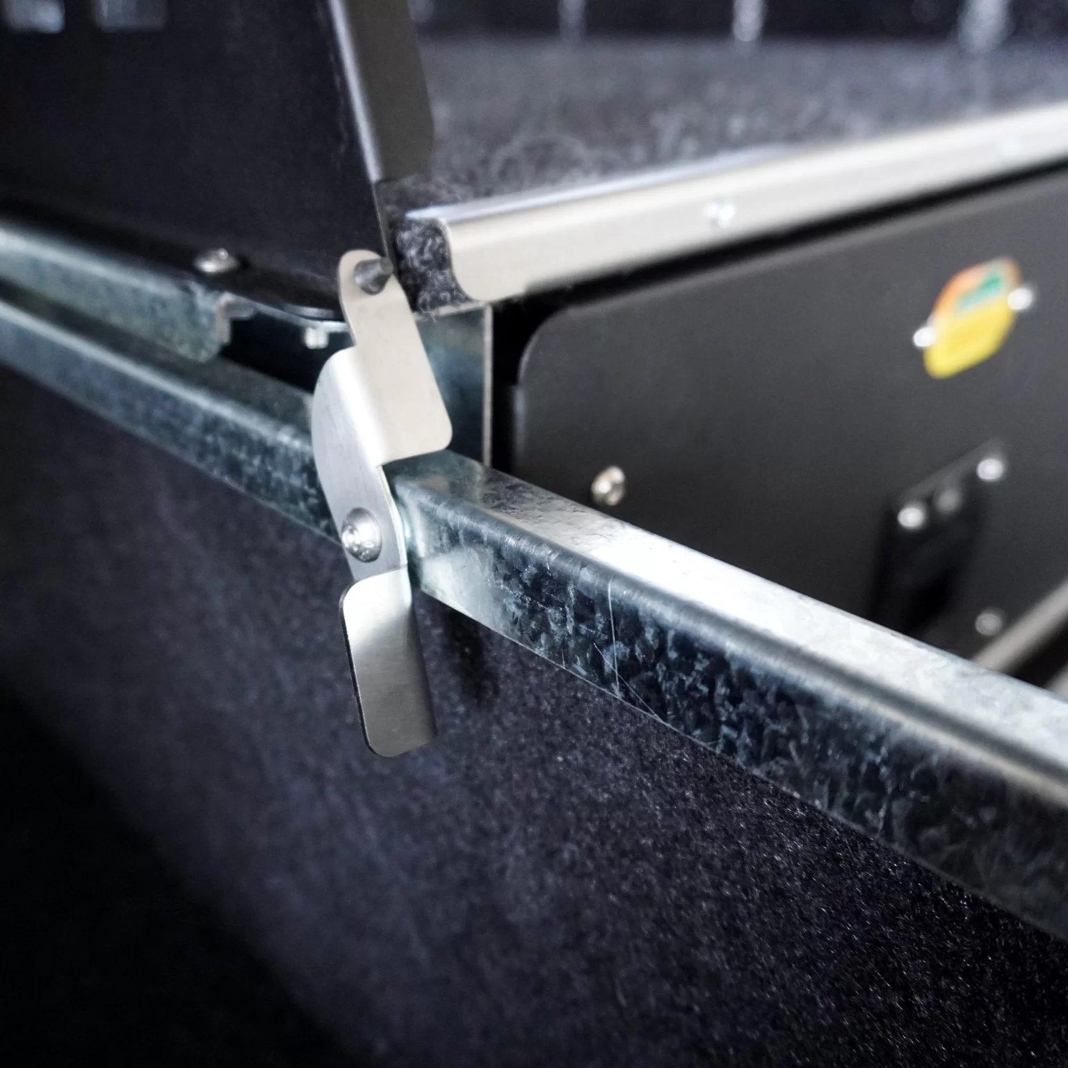 The Single Cab and Extra Cab drawers are 1470mm long and have an extension top between the drawer and the cab. This space can be accessed by simply lifting up the board.